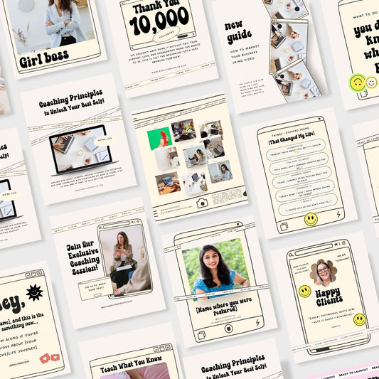 100 Retroframe Social Media Instagram, Personal Coach Product Marketing Branding, Editable Canva Template