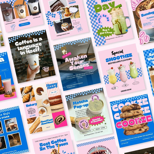 • 150 Java Cafe Blue Pink Vibrant Pop Colorful Social Media Instagram Post, Coffee Cafe Dessert Resto Theme Editable Canva Template