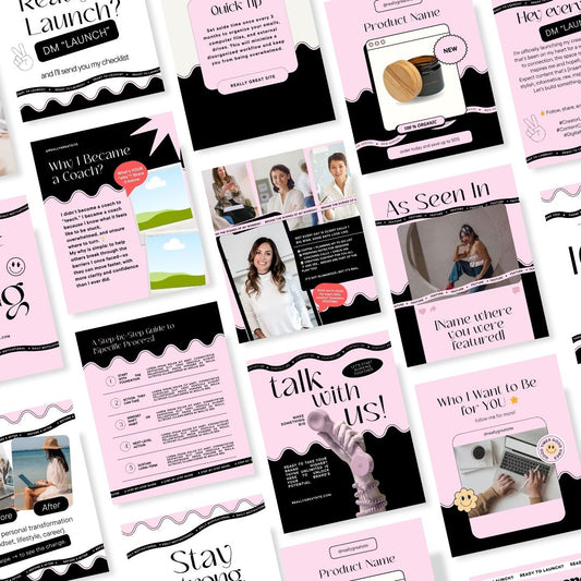 • 100 Pinkvibe Social Media Instagram, Personal Coach Product Marketing Branding, Editable Canva Template