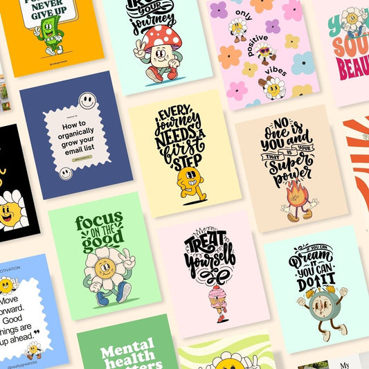 • 100 Fun Colorful Social Media Instagram Post, Retro Quote, Motivational and Inspirational Quotes, Editable Canva Coaching Templates