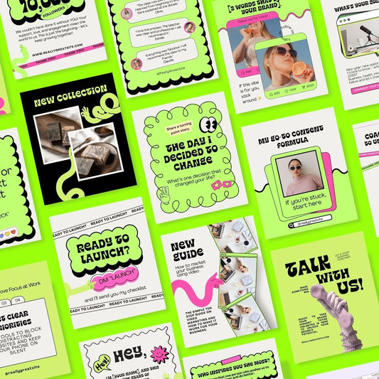 • 130+ Social Media Instagram Post, Coach Post, Instagram Marketing, Editable Canva Coaching Template, Colorful Social Media Green Neon
