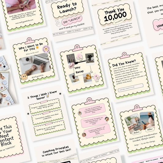 100 Cute Luckygrin Social Media Instagram, Personal Coach Product Marketing Branding, Editable Canva Template