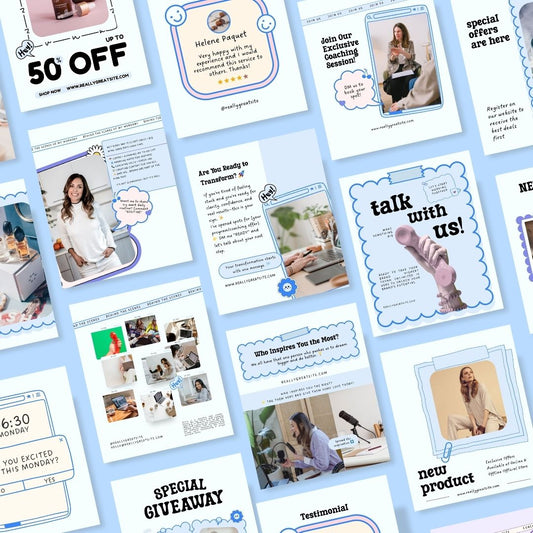 100 Cute Puffy Social Media Instagram, Personal Coach Product Marketing Branding, Editable Canva Template