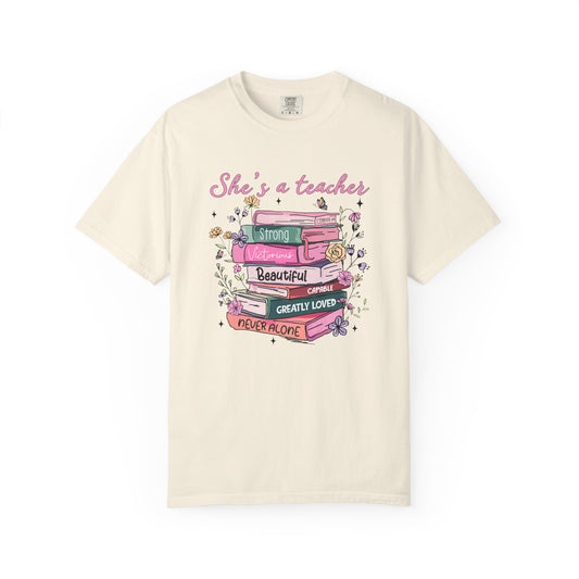 She's a teacher Unisex Garment-Dyed T-Shirt - Casual Vintage Style for Everyday Wear