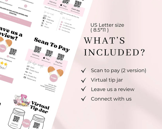 Scan to pay Forms Printable, Virtual tip jar, Leave us a review form, Pink Business signs, Editable Canva Template, Small Business