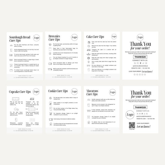 6 Minimalist Dessert Care Card Printable, Editable Canva Template, Bakery Small Business, 3 * 4 inch size