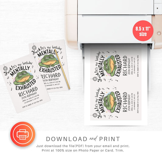 Mentally Exhausted Frog Funny Birthday Party Invitation