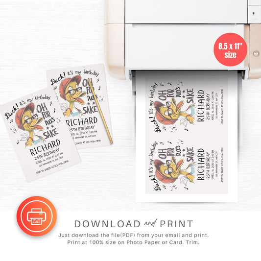 Duck Oh For Duck's Sake Funny Birthday Party Invitation