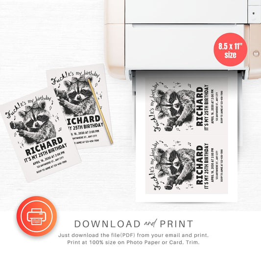 Racoon with gun Funny Birthday Party Invitation