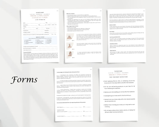 Brow Lamination Form, Consultation form, Client consent form, Editable Canva templates