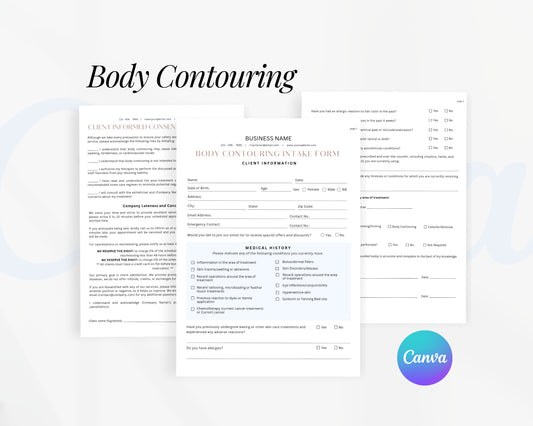Body Contouring Form, Consultation form, Client consent form, Editable Canva templates