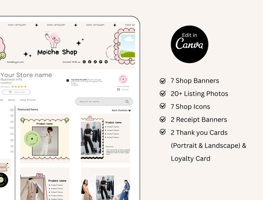 Etsy Shop Kit Mochie Bundle, Editable Canva Templates, Product Listing Photos Mockup, Etsy Seller Store Branding