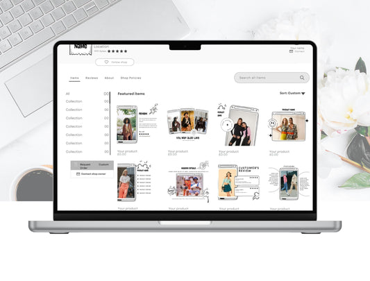 Etsy Shop Kit Retroframe Bundle, Editable Canva Templates, Product Listing Photos Mockup, Etsy Seller Retro Drawn Store Branding