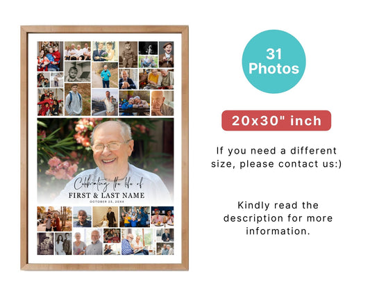EDITABLE 31 Photo Collage, Funeral Welcome Sign, Funeral Poster Sign, Canva, DIGITAL