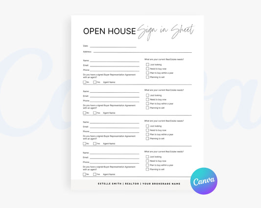 • Open House Sign Sheet, Edit in Canva - REDF13