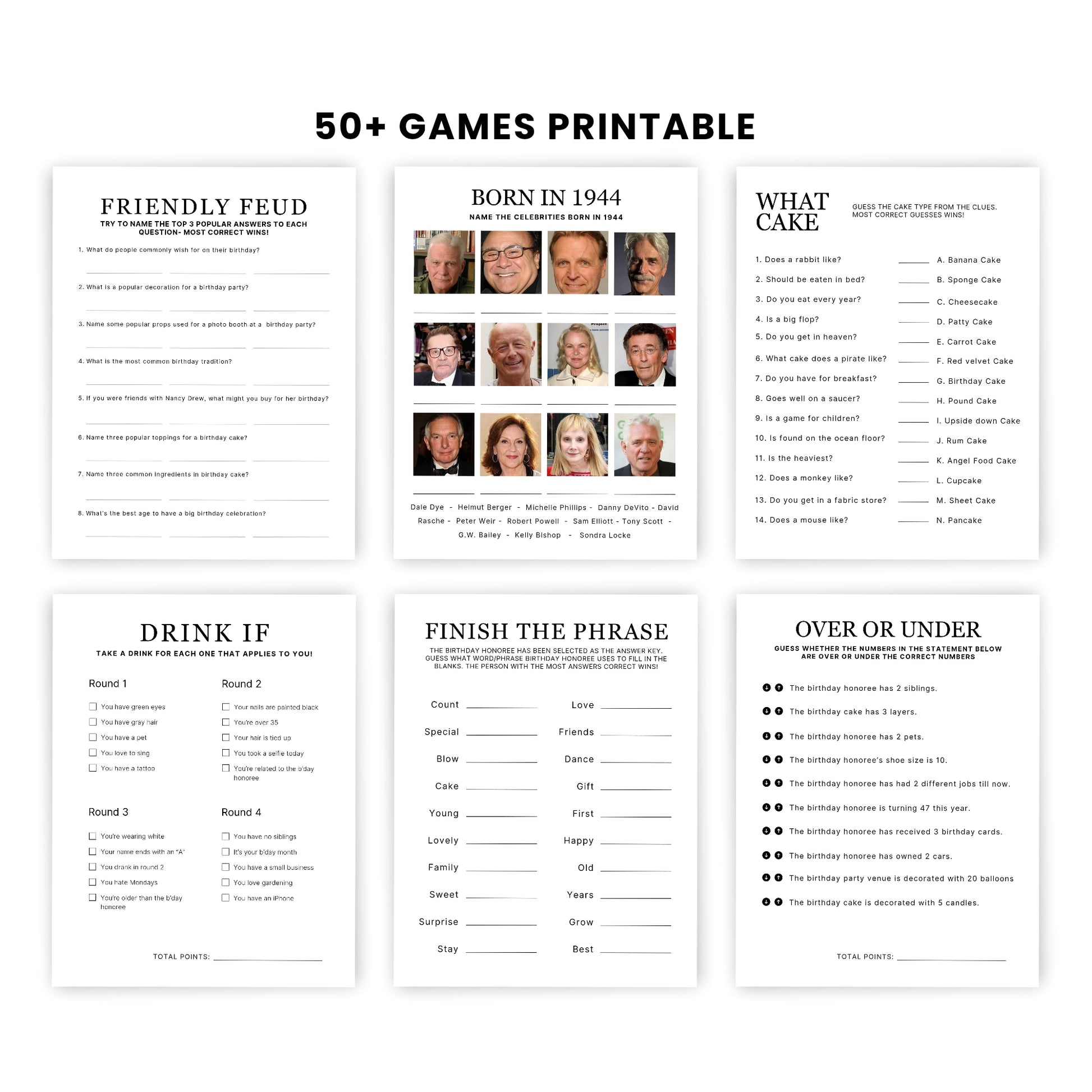 1944 Birthday Games, Born in 1944 Games, 81st Birthday Party Games, Printable Birthday Bundle