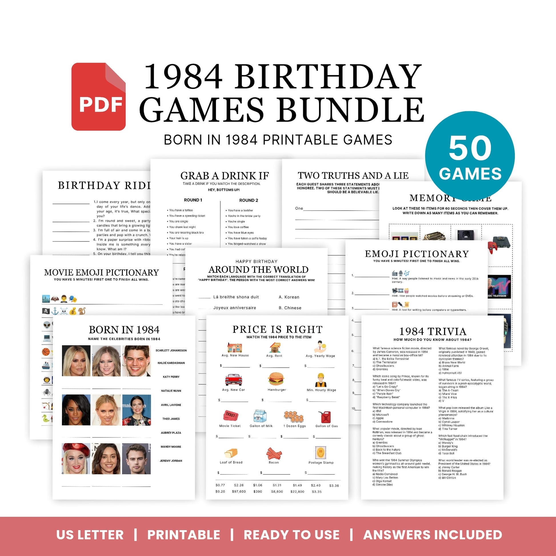1984 Birthday Games, Born in 1984 Games, 42nd Birthday Party Games, Printable Birthday Bundle