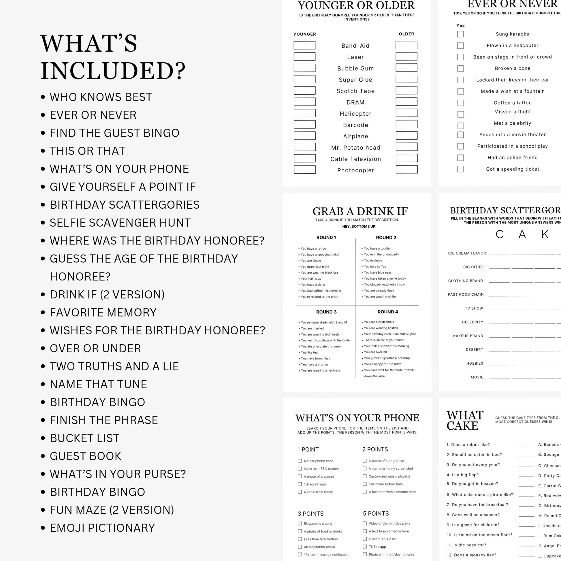 Celebrate this amazing milestone with this fun birthday game bundle. Have a blast celebrating while taking a trip back to the past. All games are super fun and super simple.