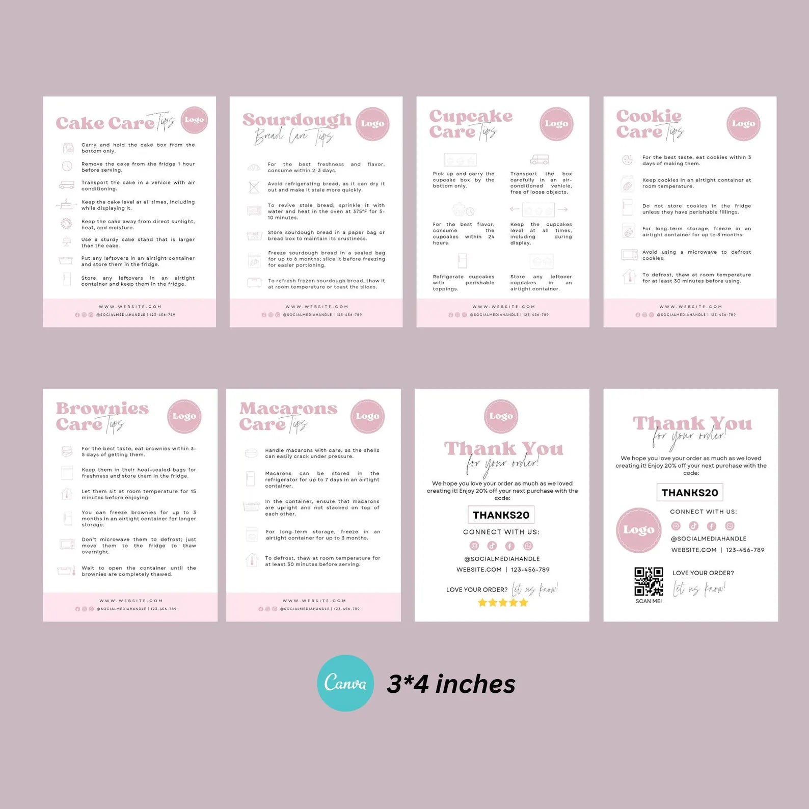 6 Dessert Care Card Printable, Editable Canva Template, Bakery Small Business, 3 * 4 inch size