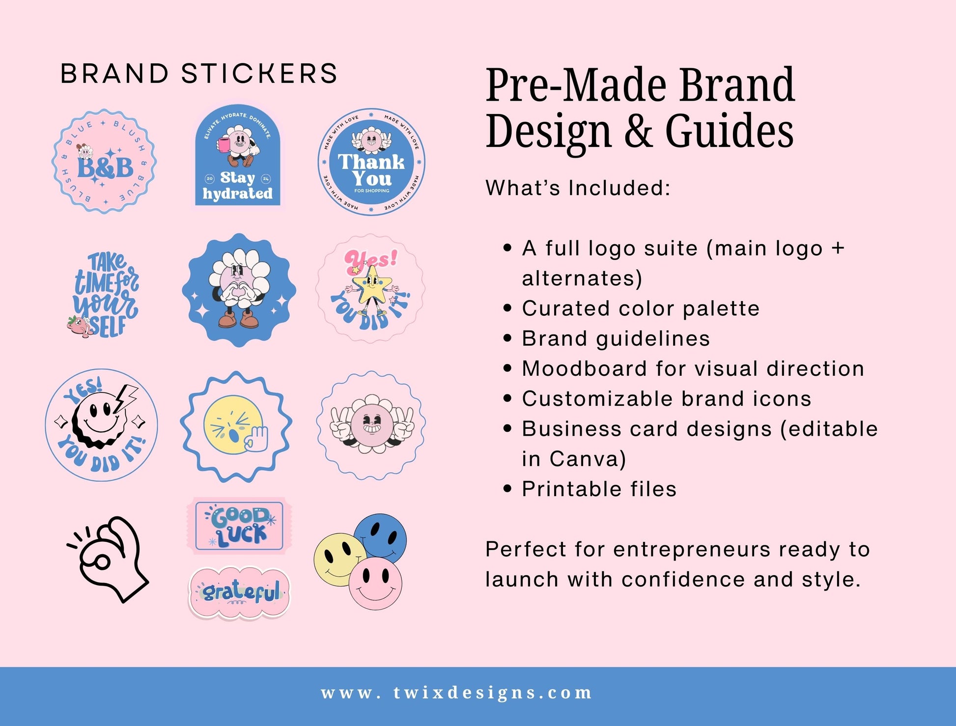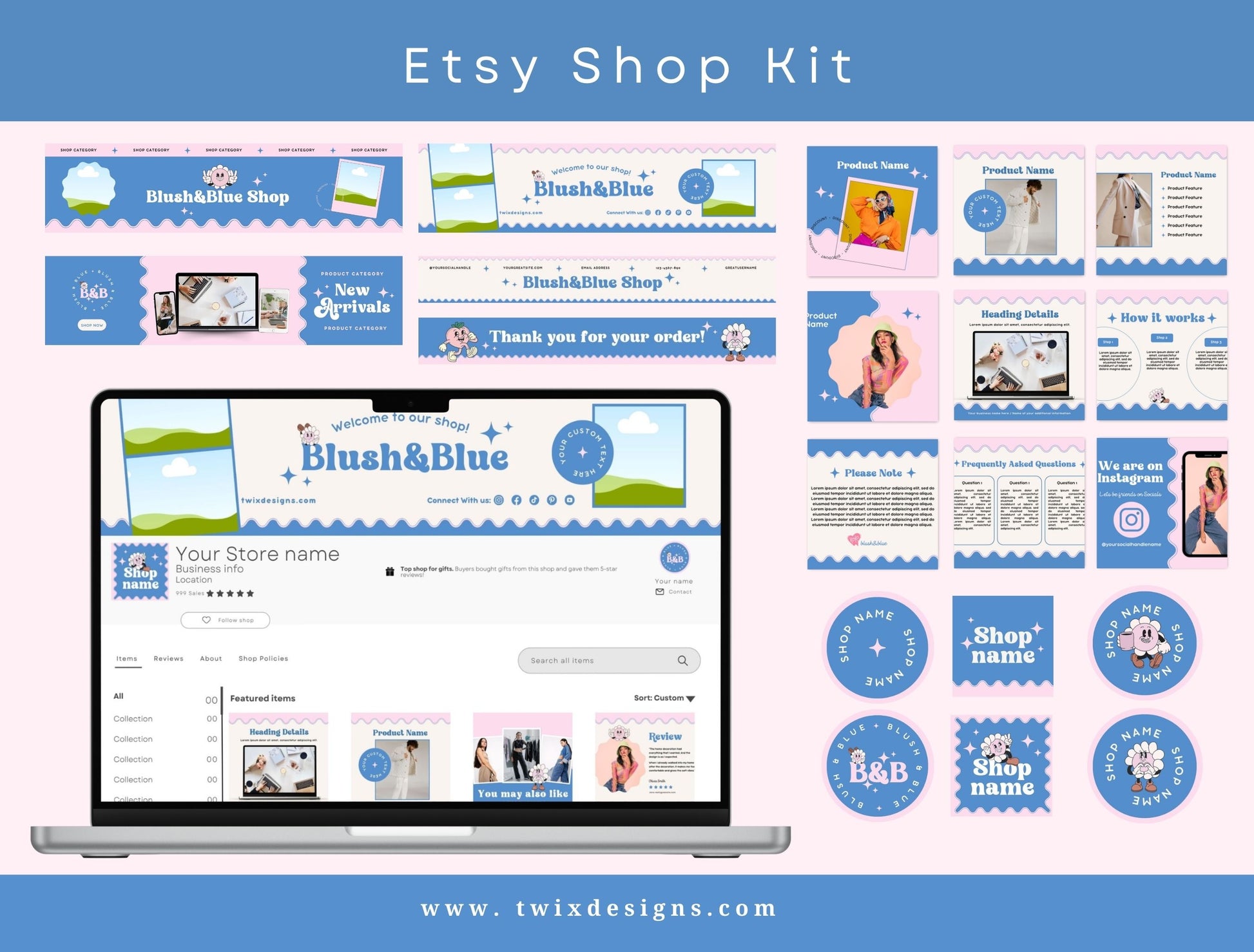 Branding Kit Blush & Blue Canva Templates Product Fashion Coach Etsy Kit Shop
