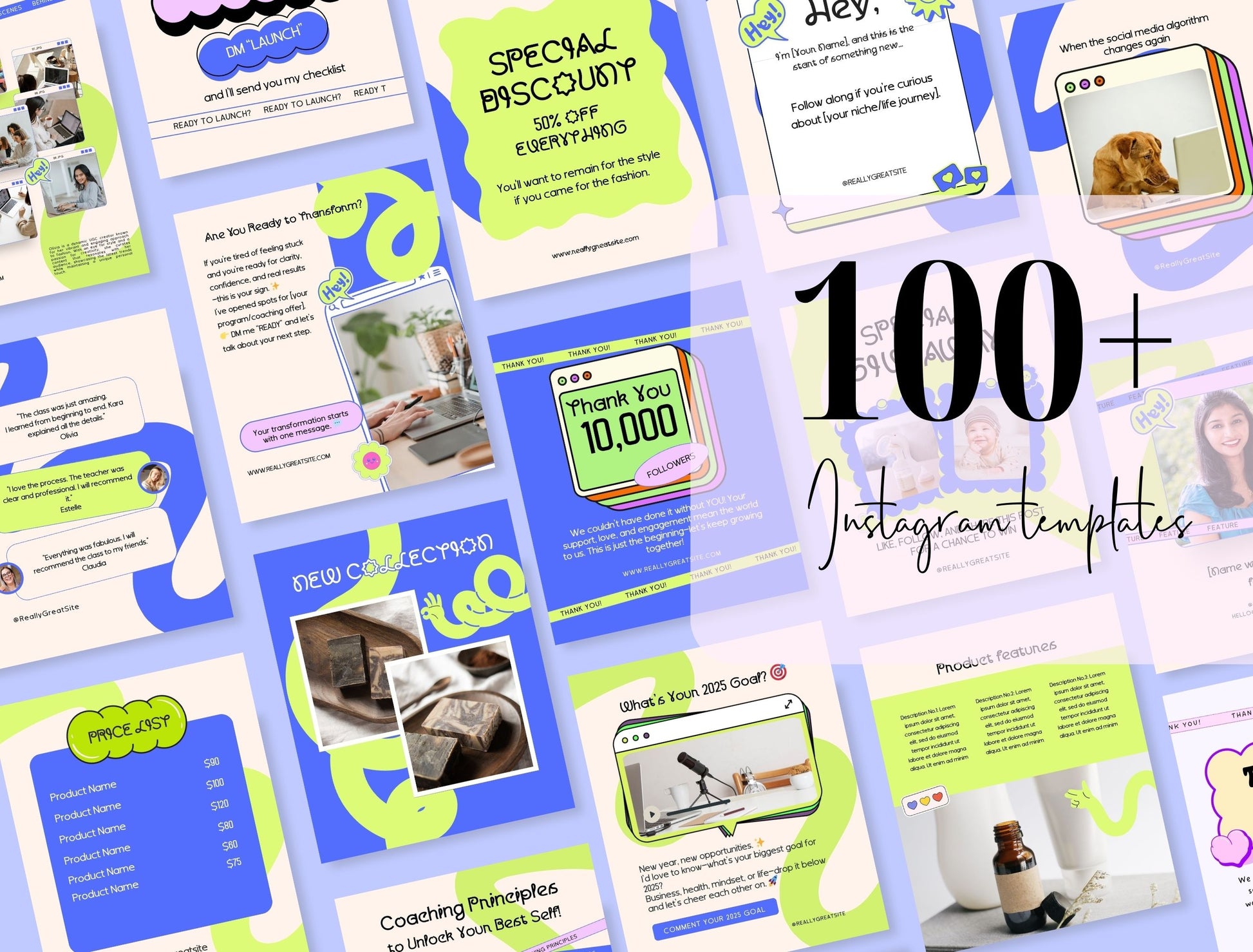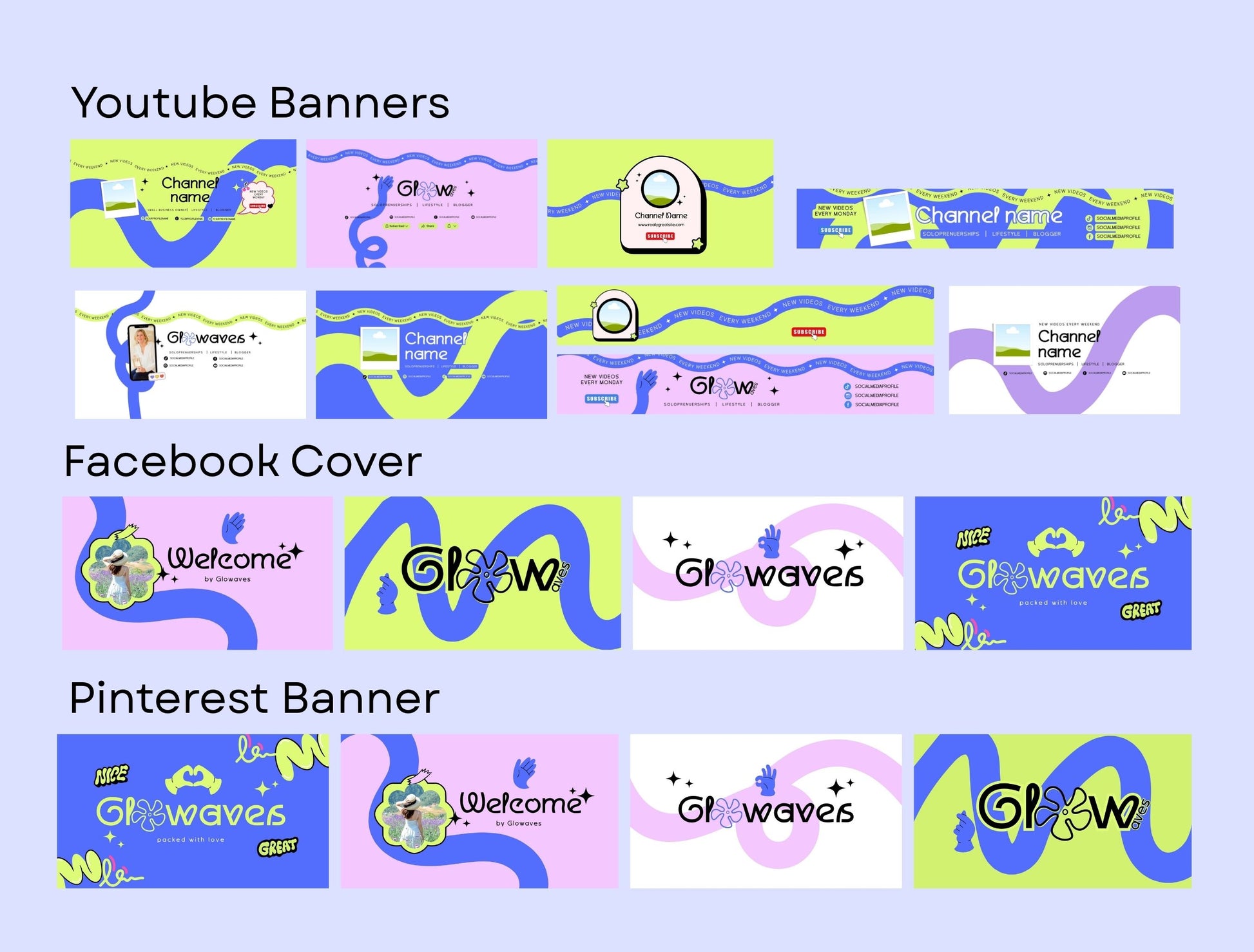 Branding Kit Glowaves Canva Templates Fashion Coach Etsy Kit Blue Green Theme