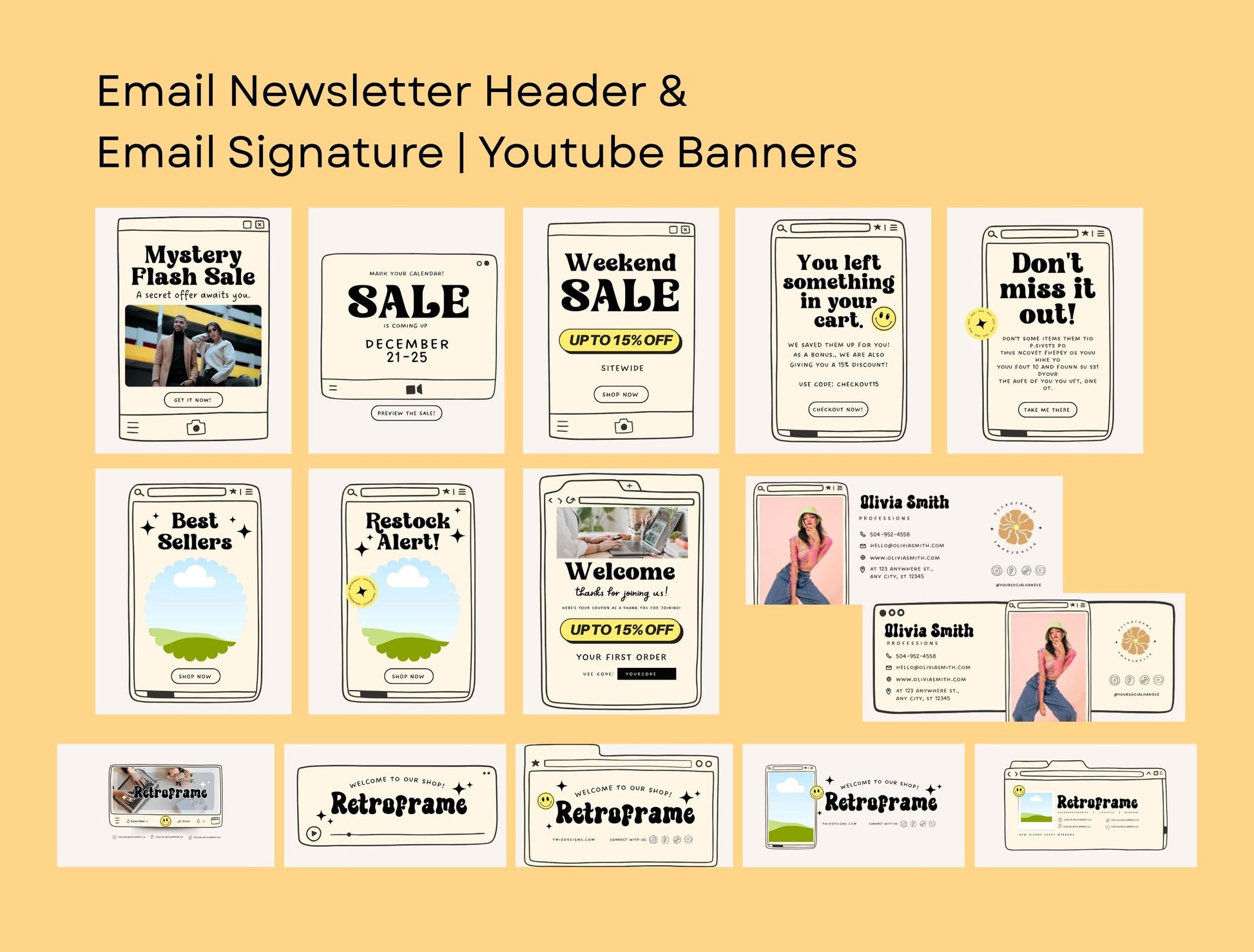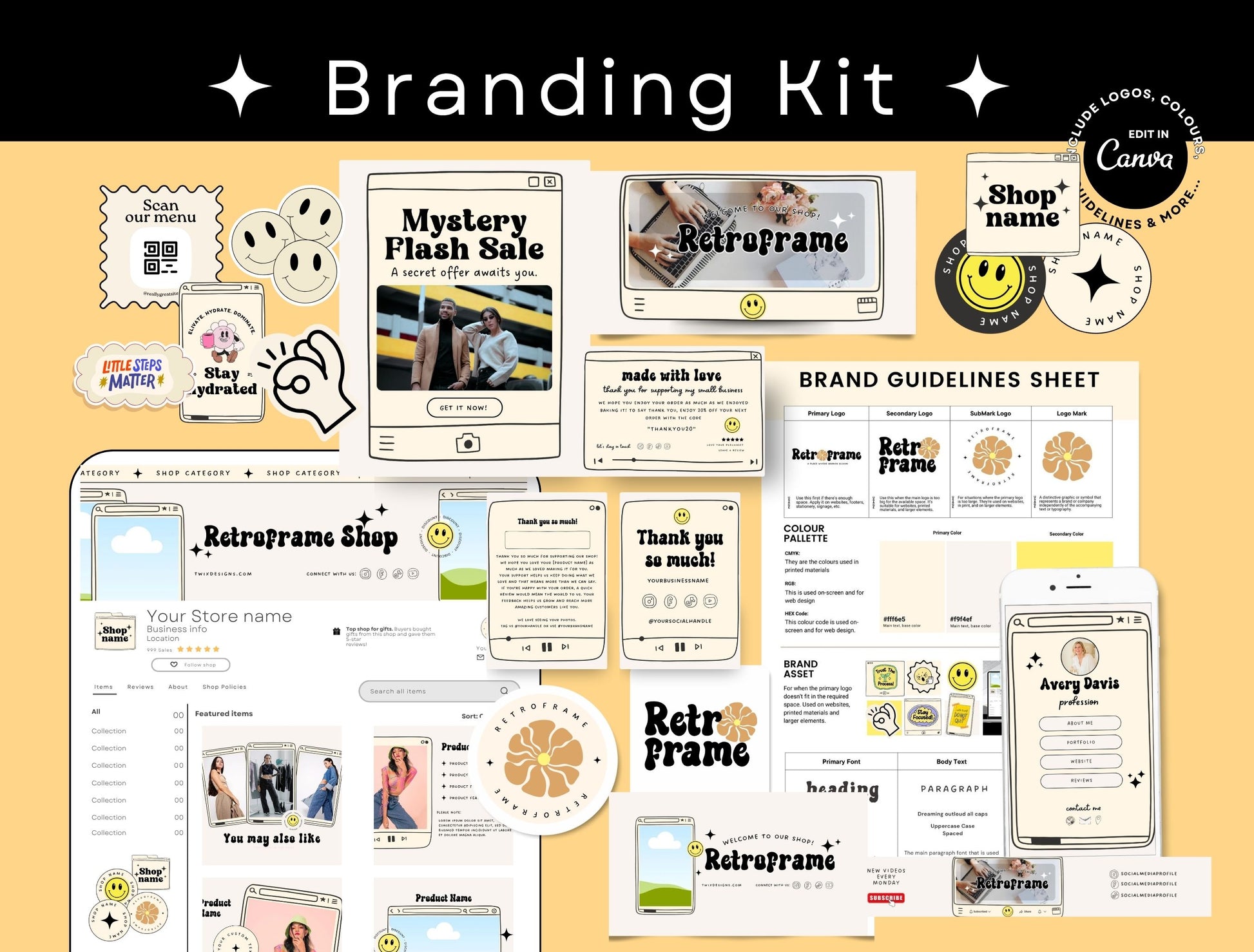 Branding Kit Retroframe Canva Templates Product Fashion Coach Etsy Kit Retro Drawn Beige Theme