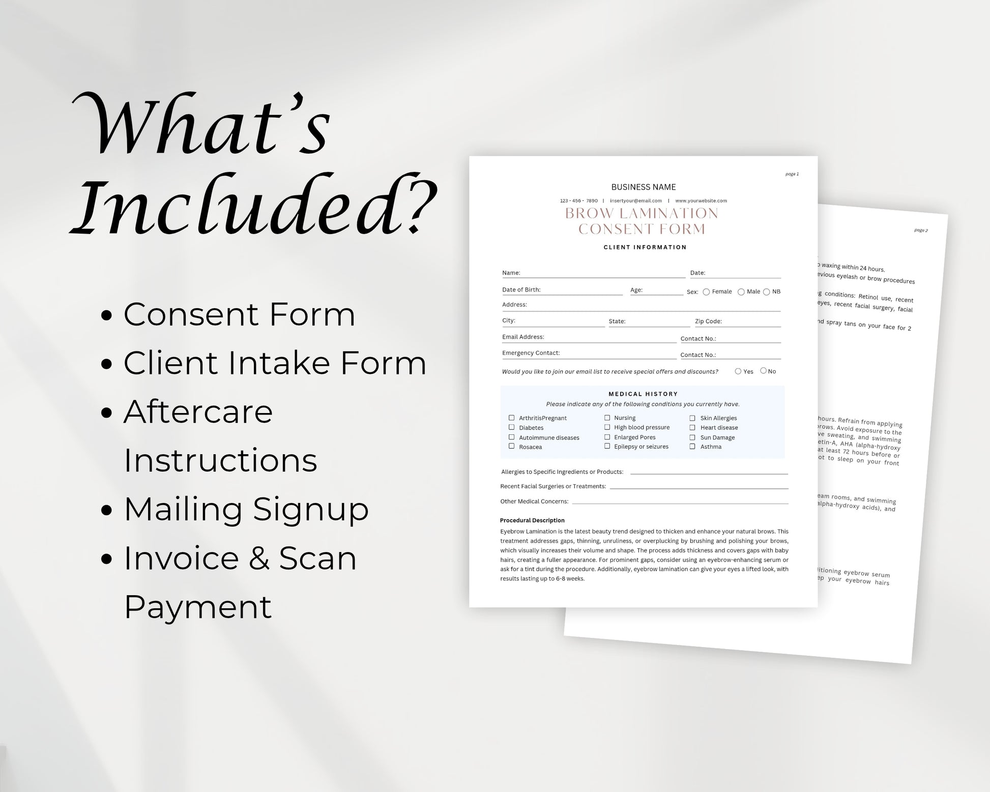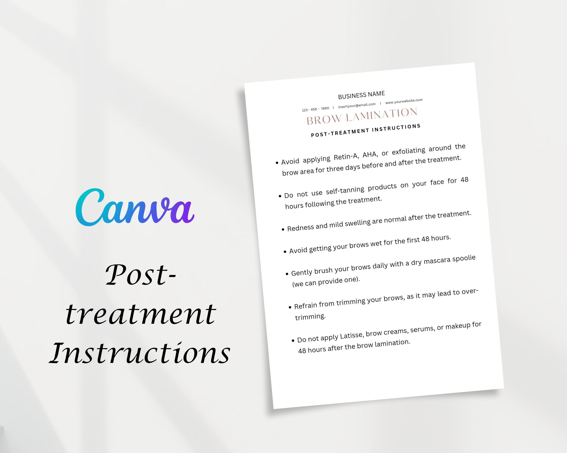 Brow Lamination Form, Consultation form, Client consent form, Editable Canva templates