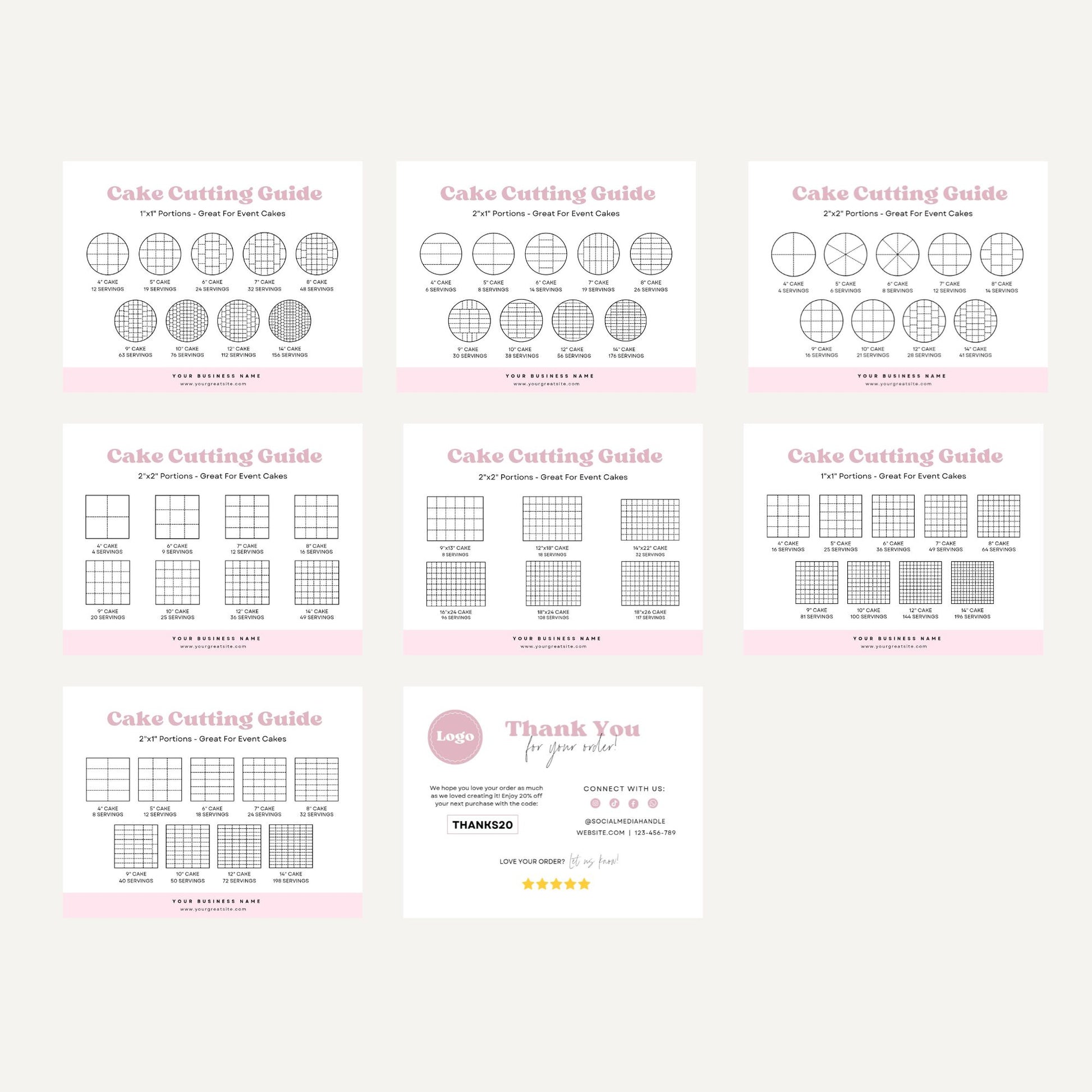Cake cutting guide Card Printable, Editable Canva Template, Bakery Small Business, 5.5*4.25 inch size