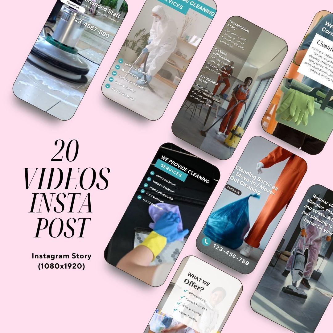 Cleaning Services Bundle, Business Forms, Door Hanger, Flyers, Business Card, Social Media Post, Canva Templates Pink Theme