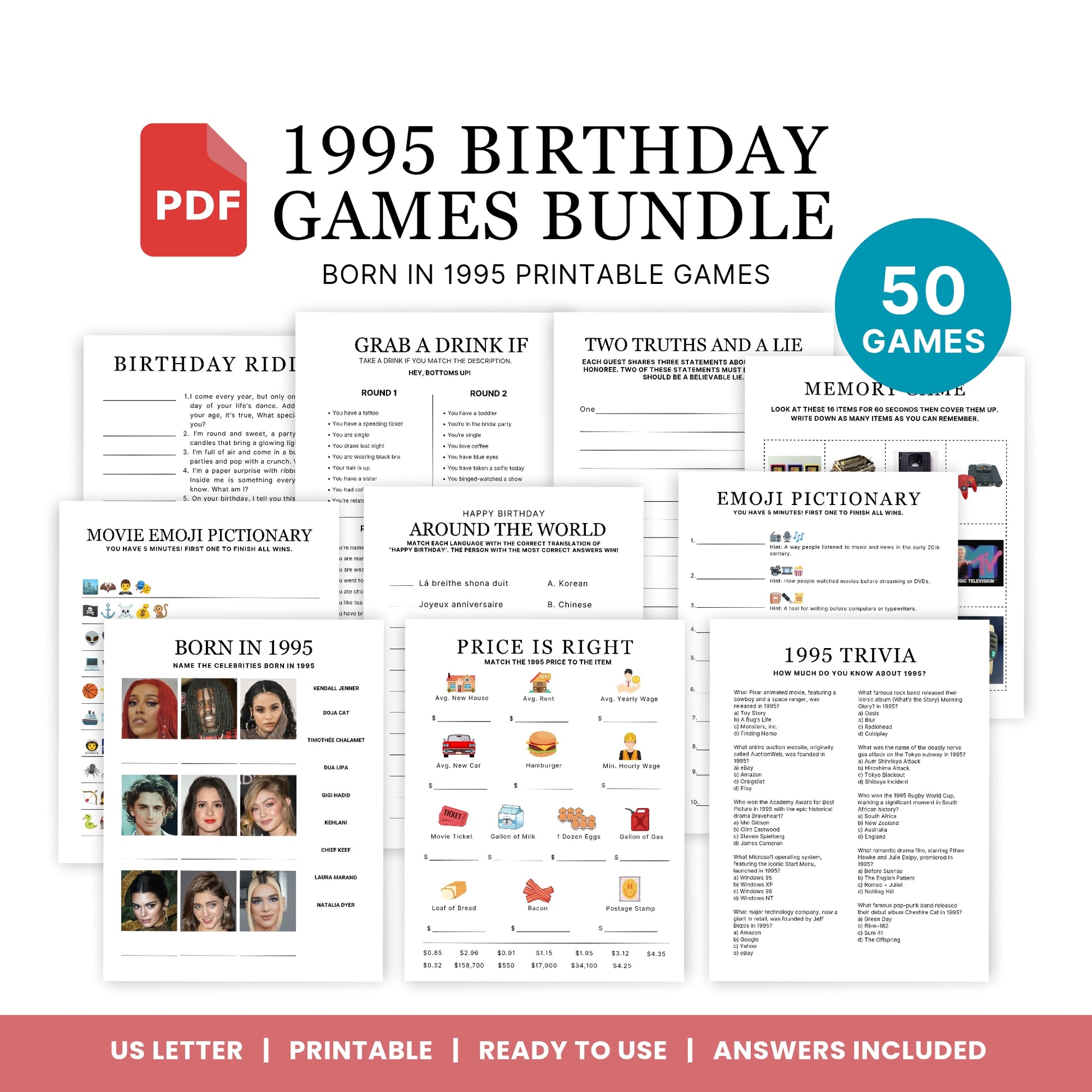 1995 Birthday Games, Born in 1995 Games, Birthday Party Games, Printable Birthday Bundle