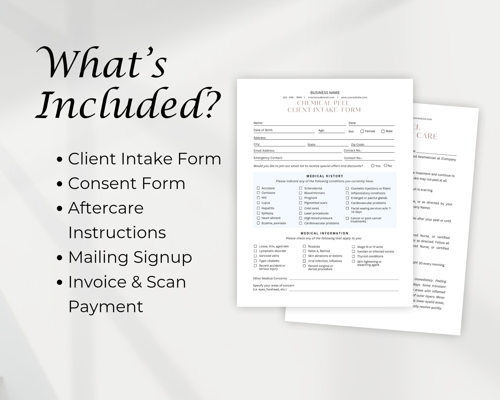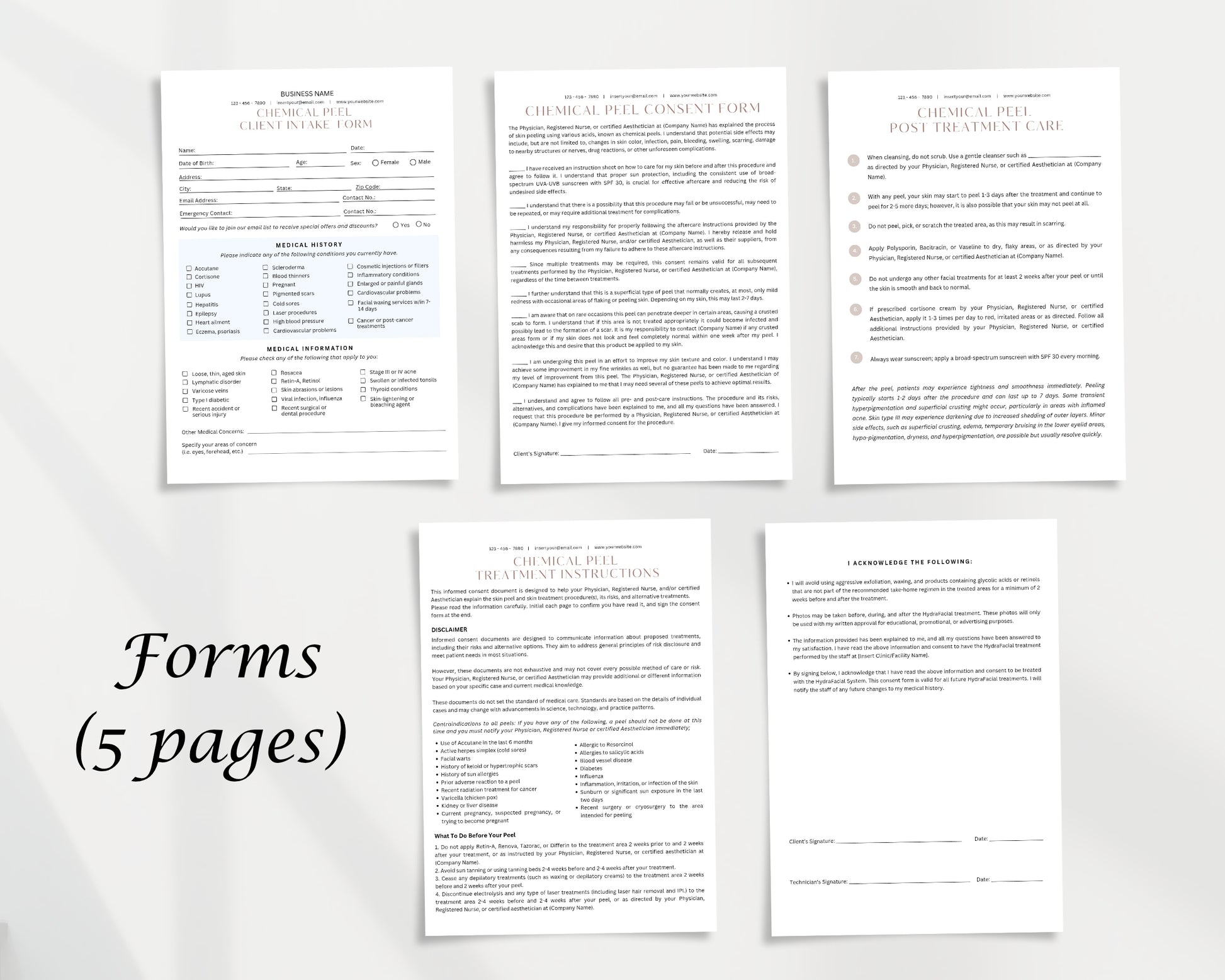 Chemical Peel Form, Consultation form, Client consent form, Editable Canva templates