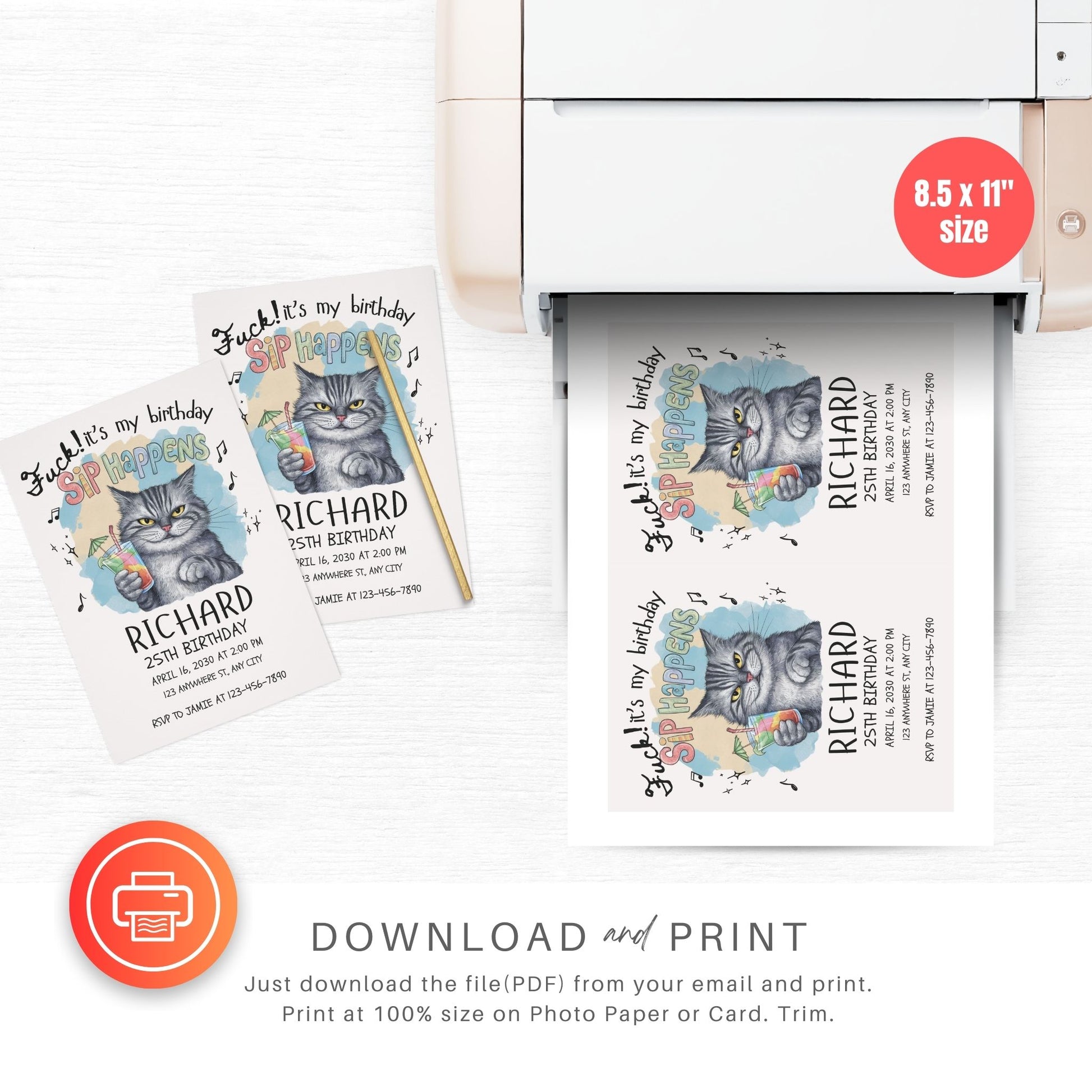 Sip Happens Funny Birthday Party Invitation