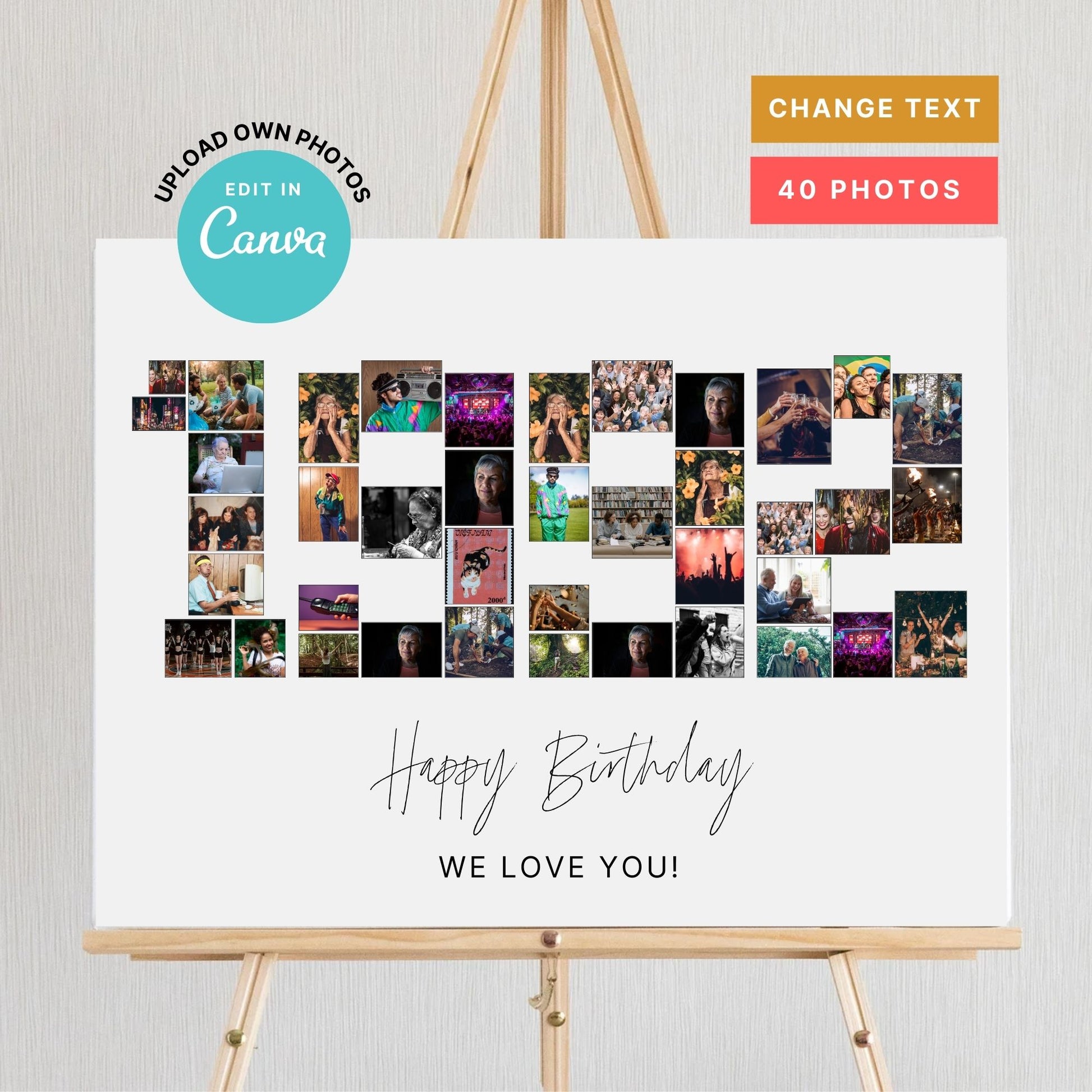 EDITABLE 1992 Photo Collage, 33rd Birthday, Photo Collage Gift, Number Collage, CANVA