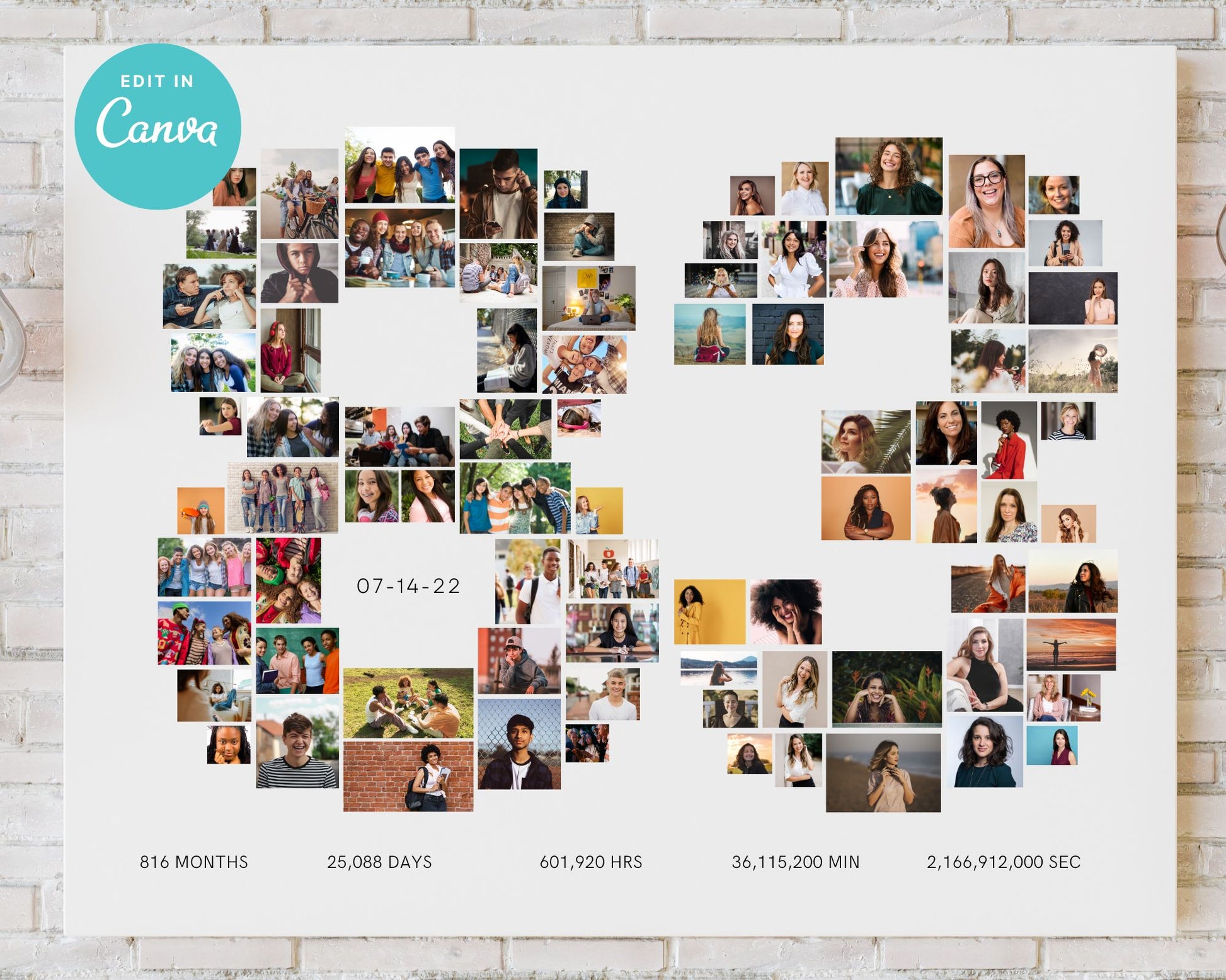 EDITABLE 83 Years Photo Collage, 82 Photos, Canva, DIGITAL