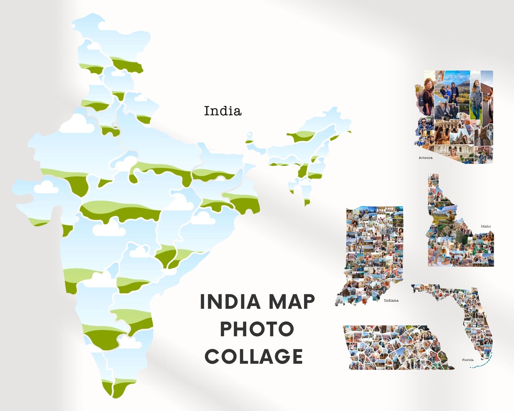 EDITABLE India Map Photo Collage, 25+ Photos, Map Wall Art, CANVA, Digital