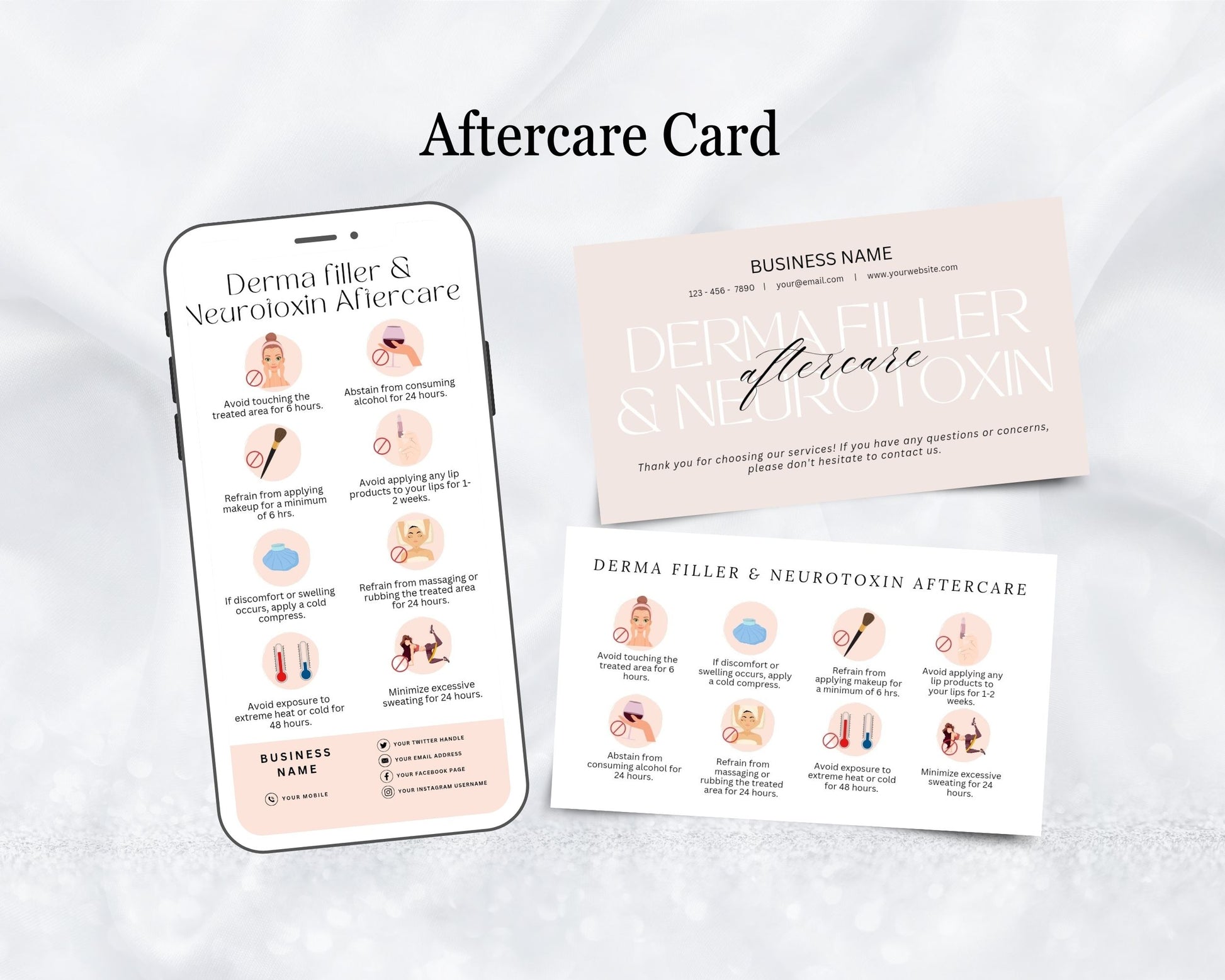 Derma Filler & Neurotoxin Care Card, Aftercare Card, Edit in Canva