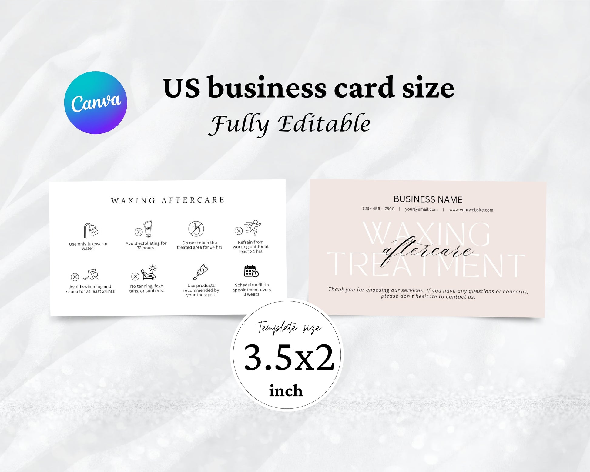 Waxing Treatment Care Card, Aftercare Card, Edit in Canva