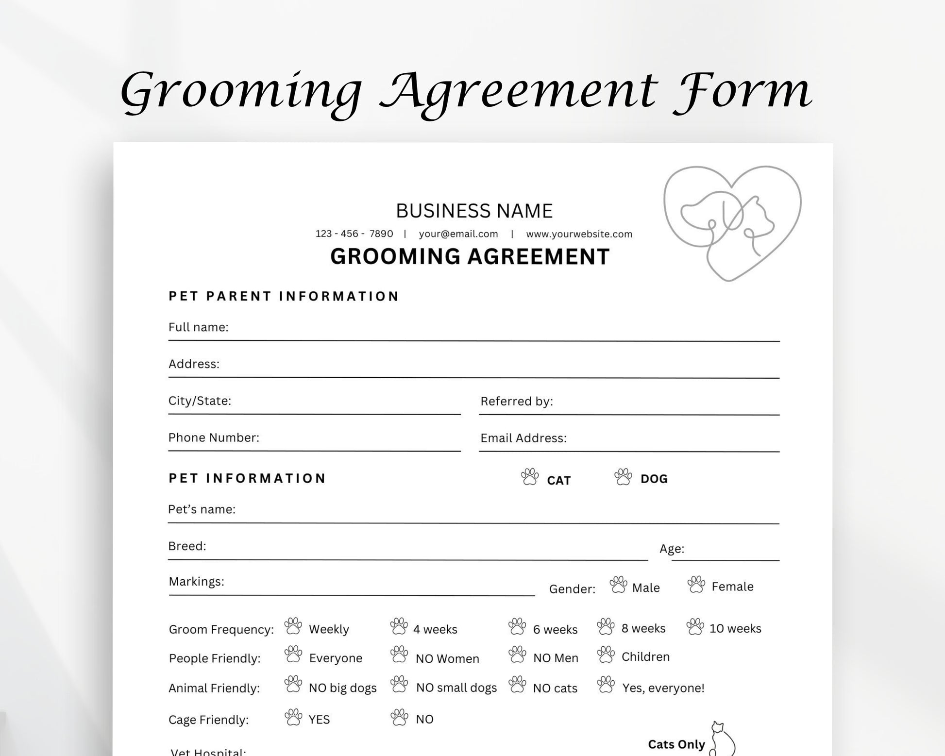 Grooming Agreement Printable Form, Edit in Canva, Digital