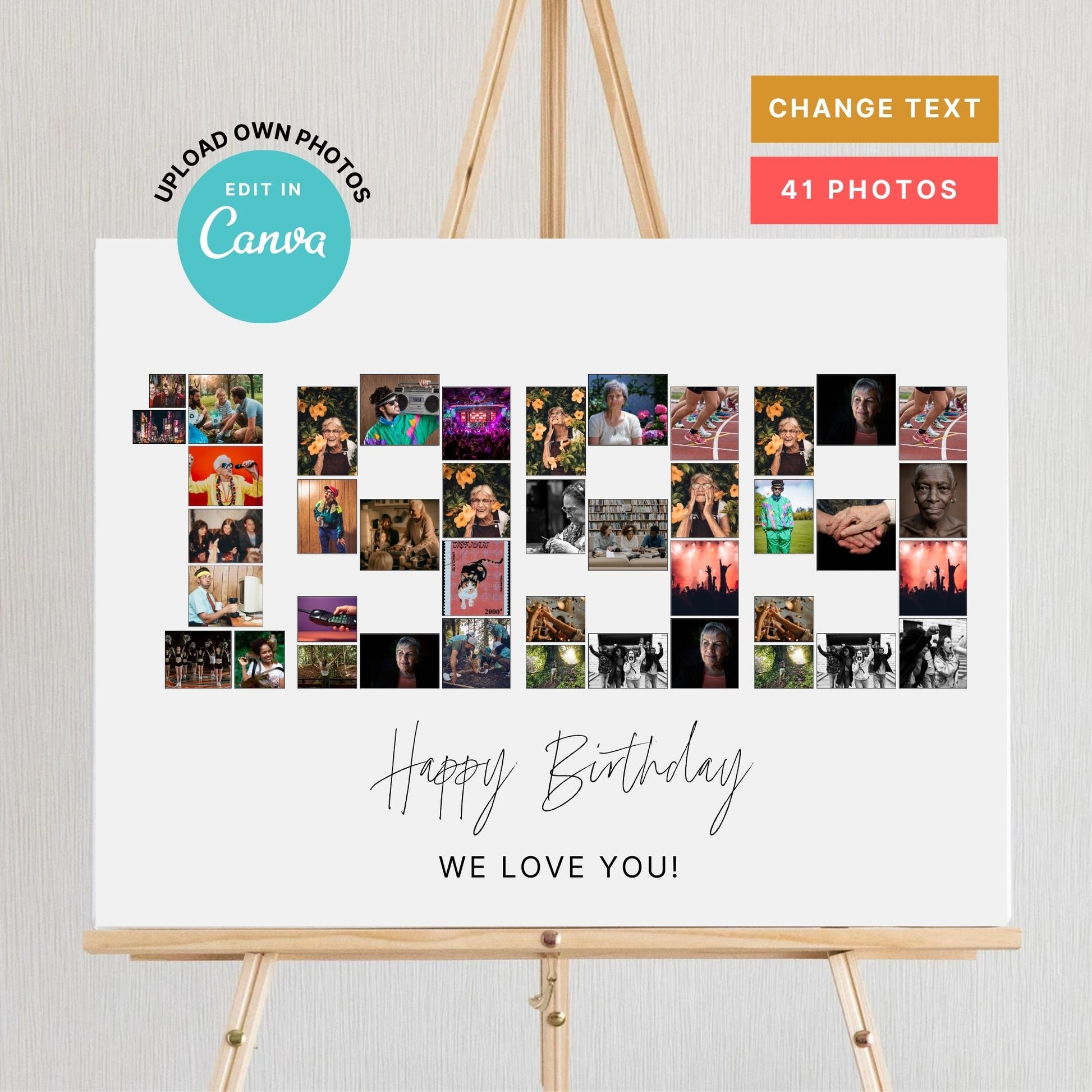 EDITABLE 1999 Photo Collage, 26th Birthday, Photo Collage Gift, Number Collage, CANVA