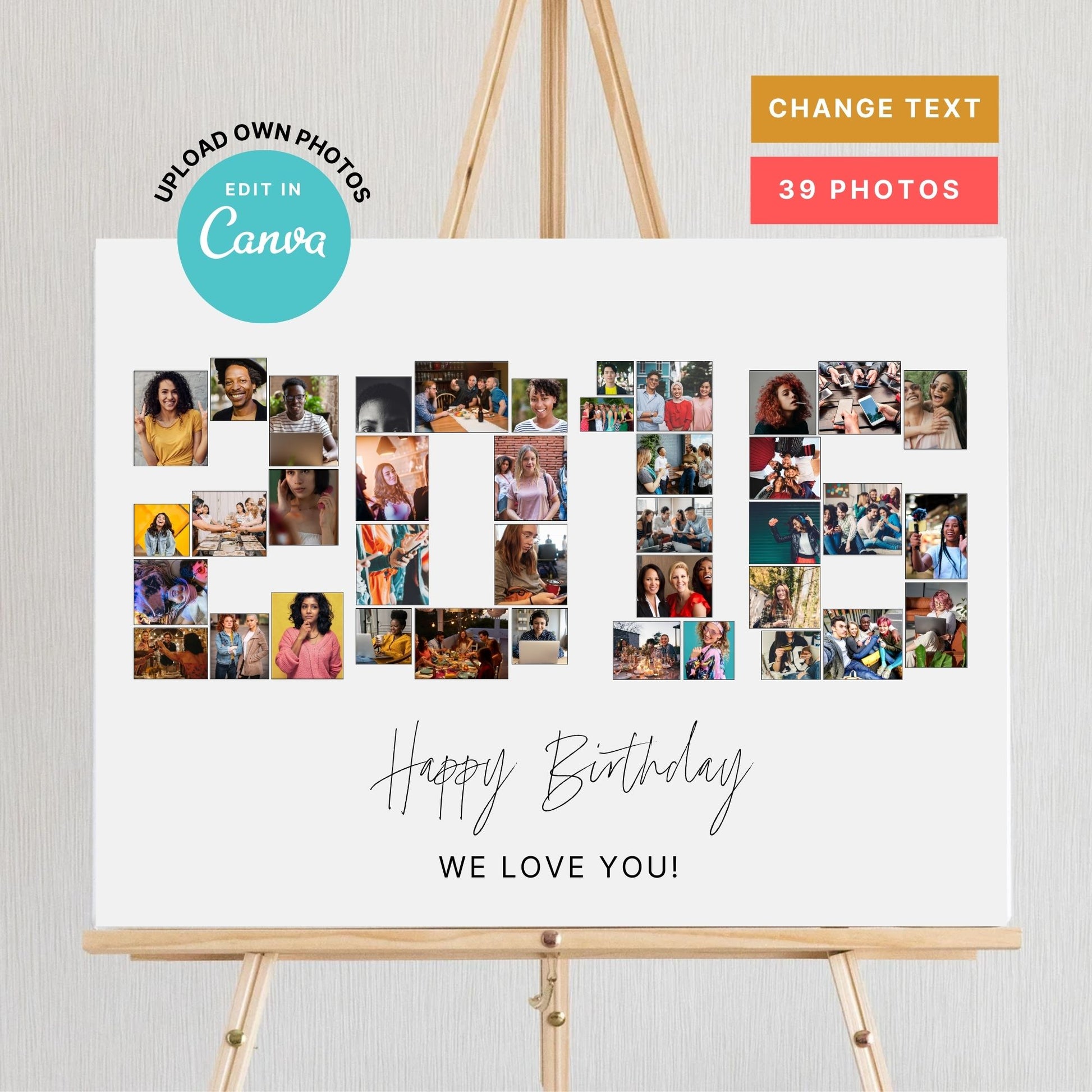 EDITABLE 2016 Photo Collage, Photo Collage Gift, Number Collage, CANVA