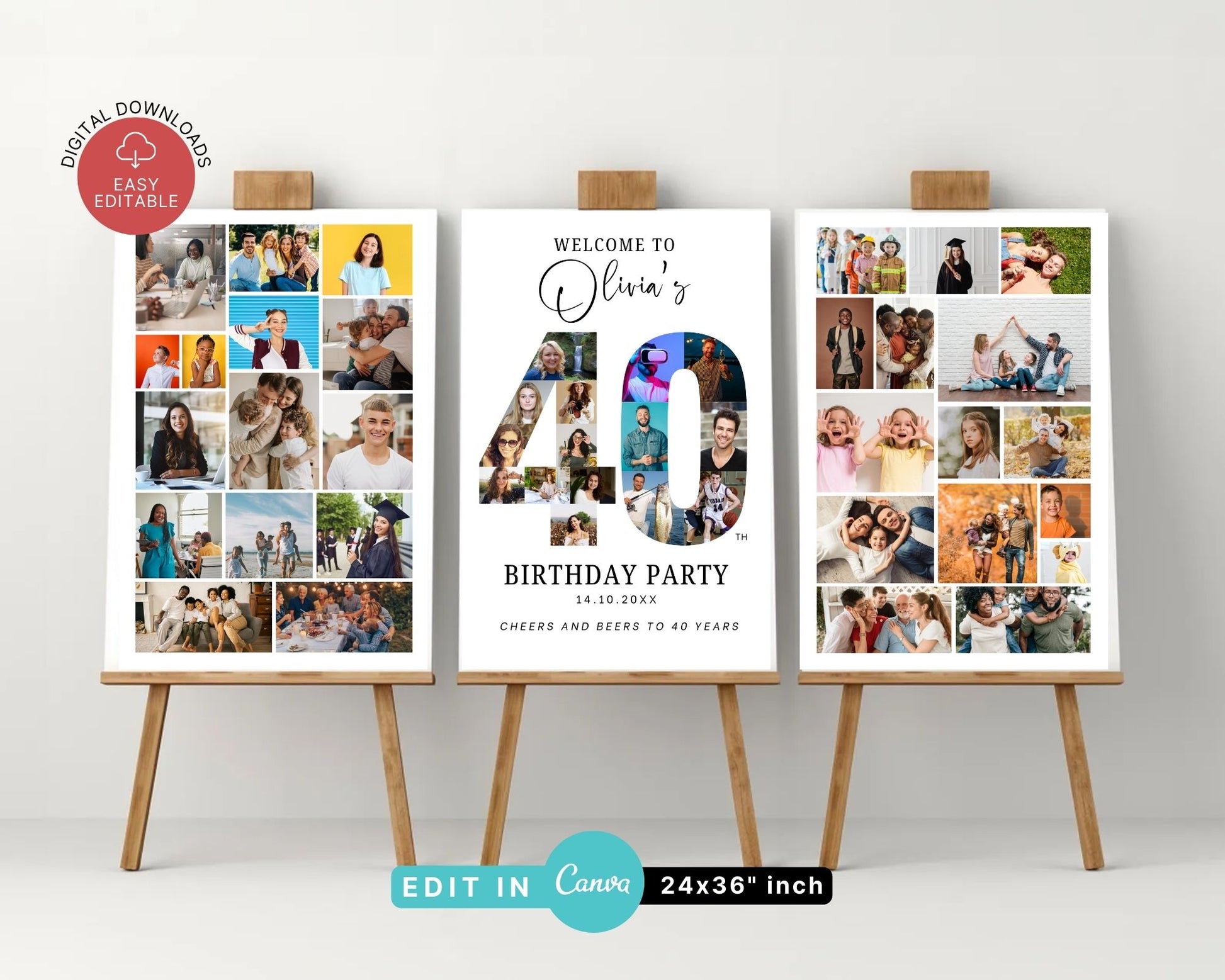 EDITABLE 40 Photo Collage, Welcome Sign, Canva, DIGITAL