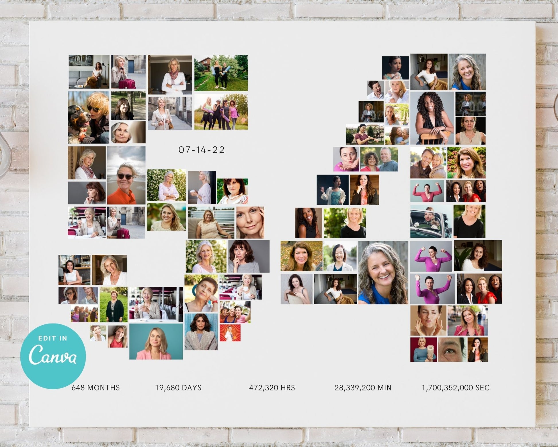 EDITABLE 54 Years Photo Collage, 78 Photos, Canva, DIGITAL