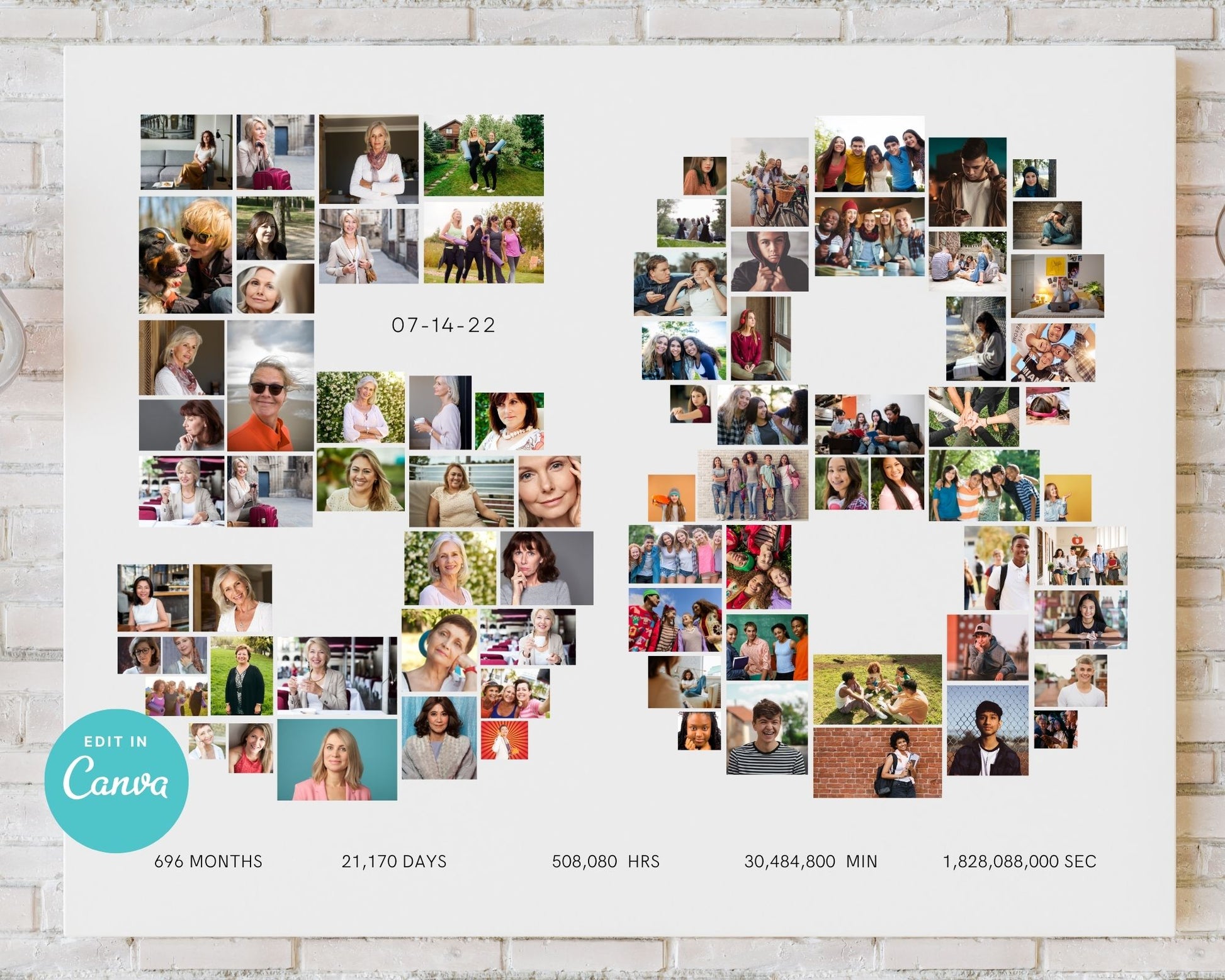 EDITABLE 58 Years Photo Collage, 79 Photos, Canva, DIGITAL