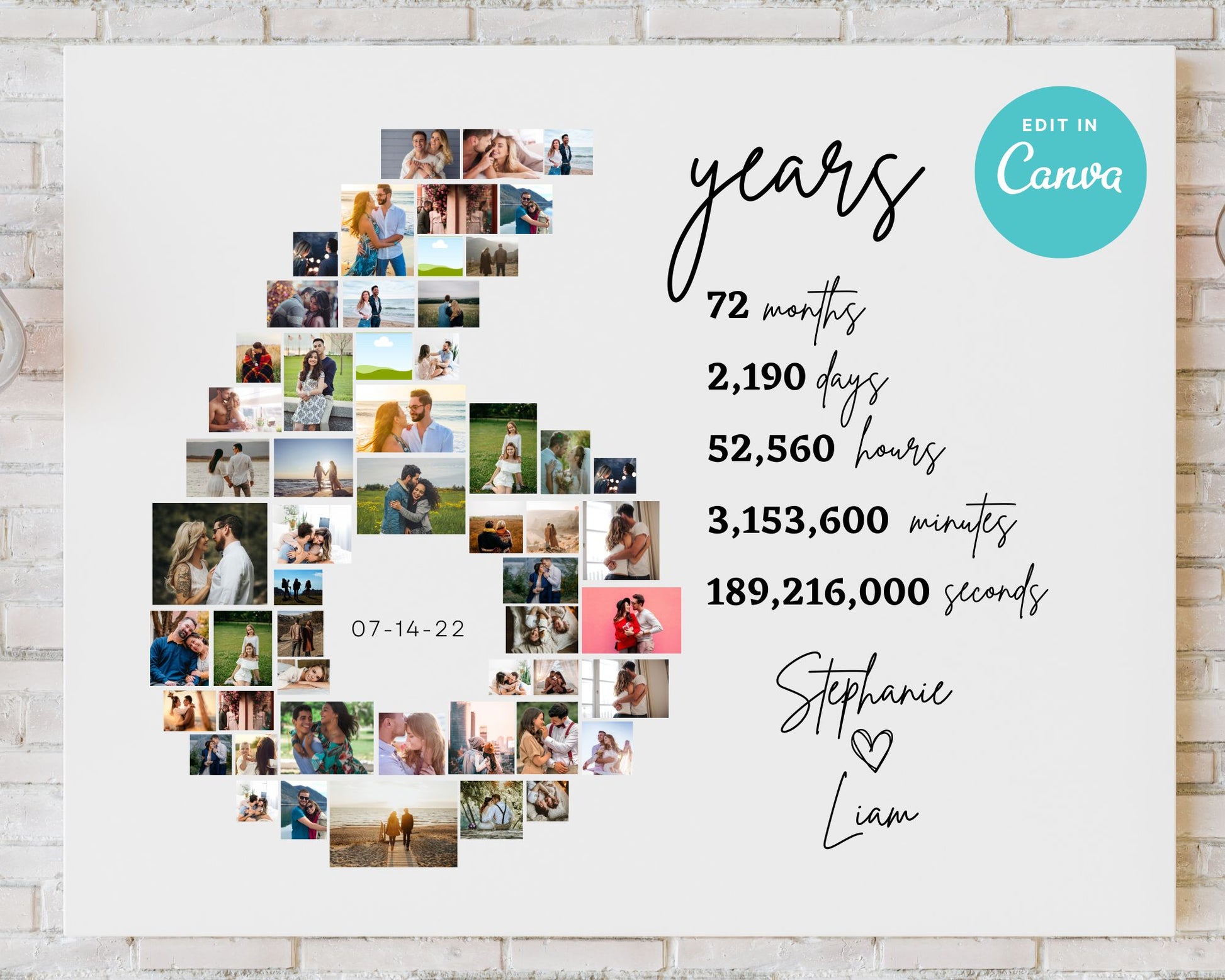 EDITABLE 6 Years Photo Collage, 53 Photos, Canva, DIGITAL