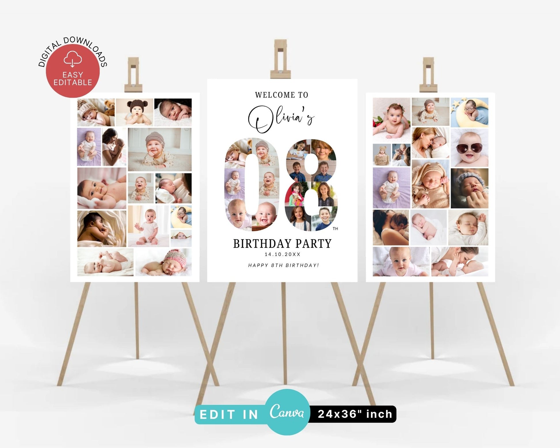 EDITABLE 8 Photo Collage, Welcome Sign, Canva, DIGITAL