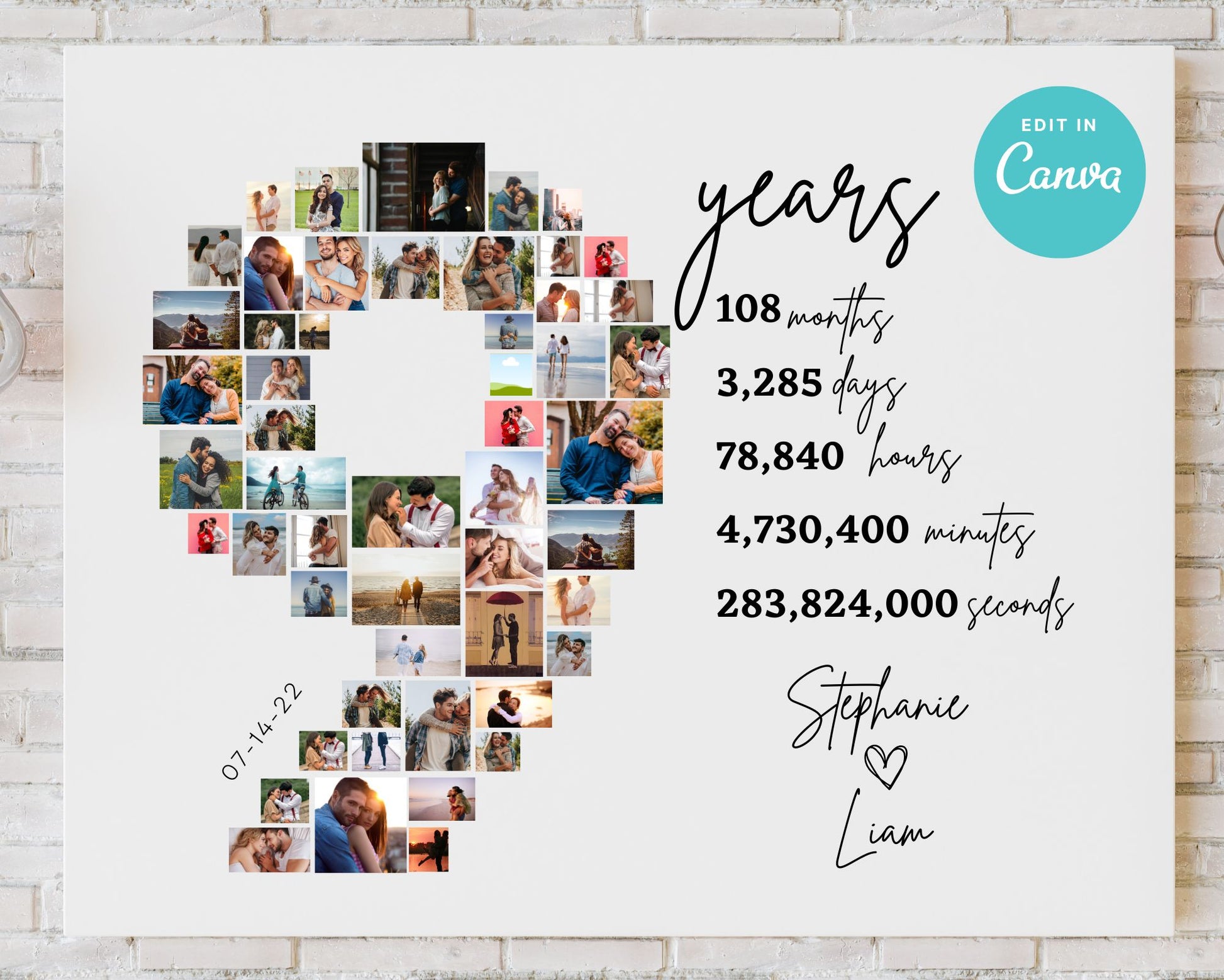 EDITABLE 9 Years Photo Collage, 52 Photos, Canva, DIGITAL
