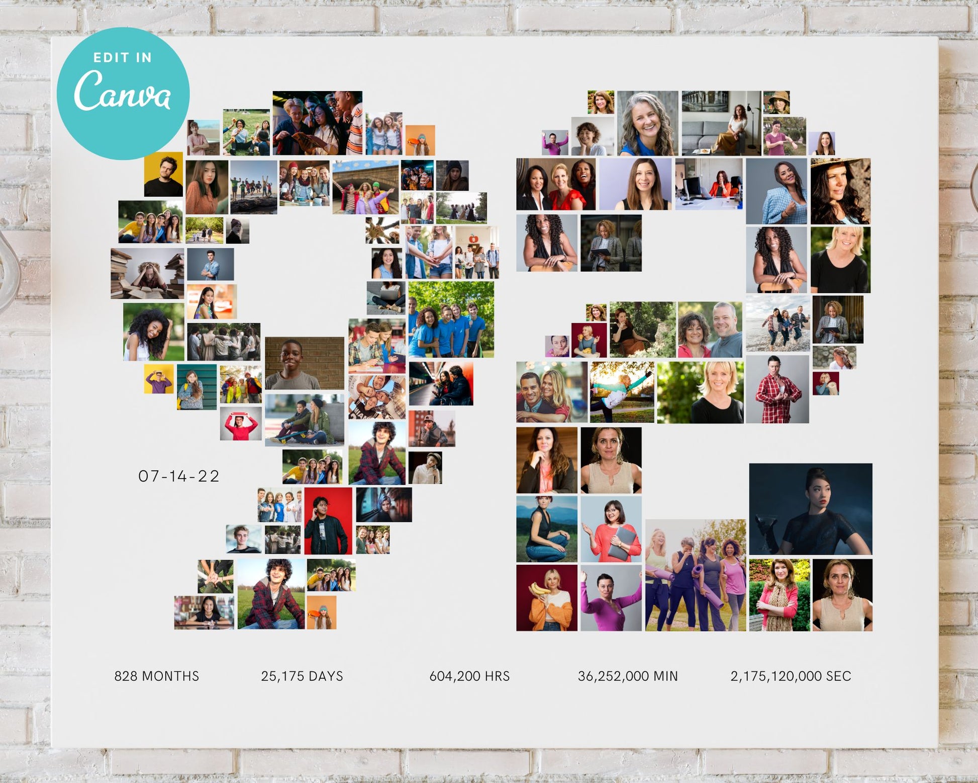 EDITABLE 92 Years Photo Collage, 92 Photos, Canva, DIGITAL