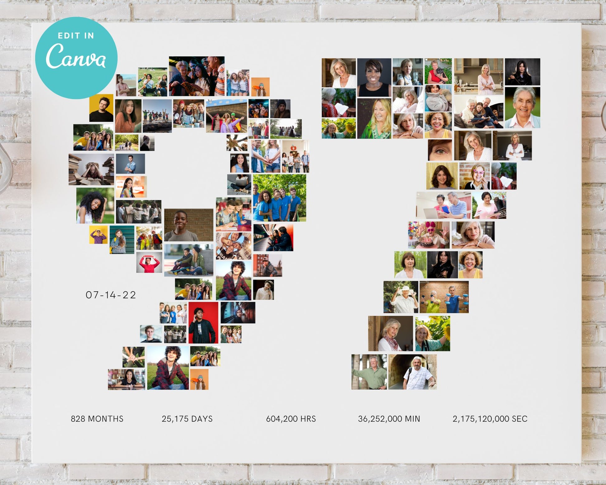EDITABLE 97 Years Photo Collage, 86 Photos, Canva, DIGITAL