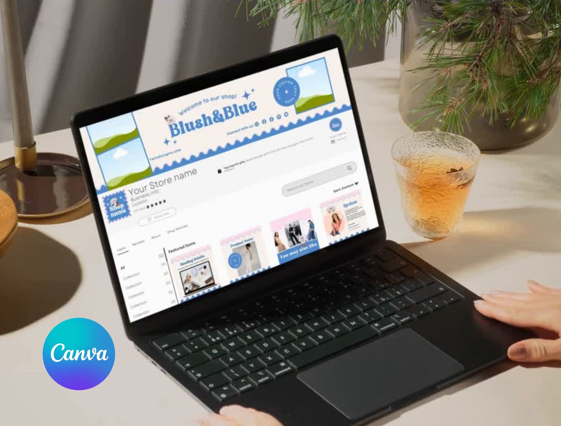 Etsy Shop Kit Blush&Blue Bundle, Editable Canva Templates, Product Listing Photos Mockup, Etsy Seller Store Branding