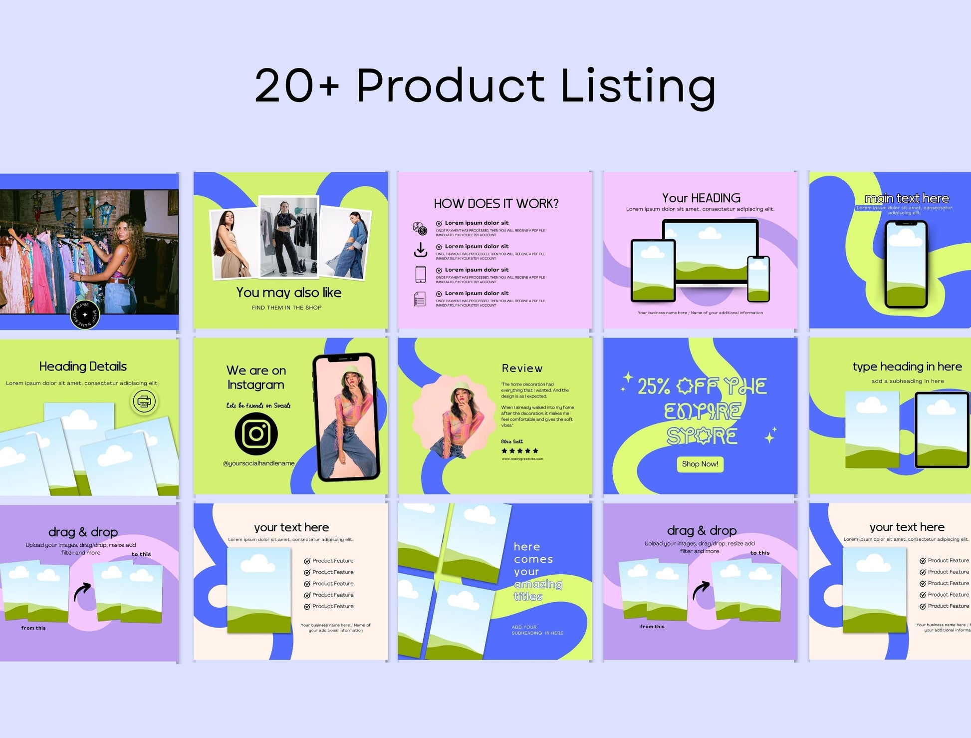 Etsy Shop Kit Glowaves Bundle, Editable Canva Templates, Product Listing Photos Mockup, Etsy Seller Store Branding